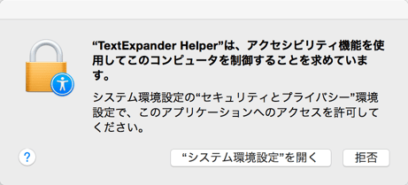 TextExpander Helperでアクセシビリティ機能の警告が出たら