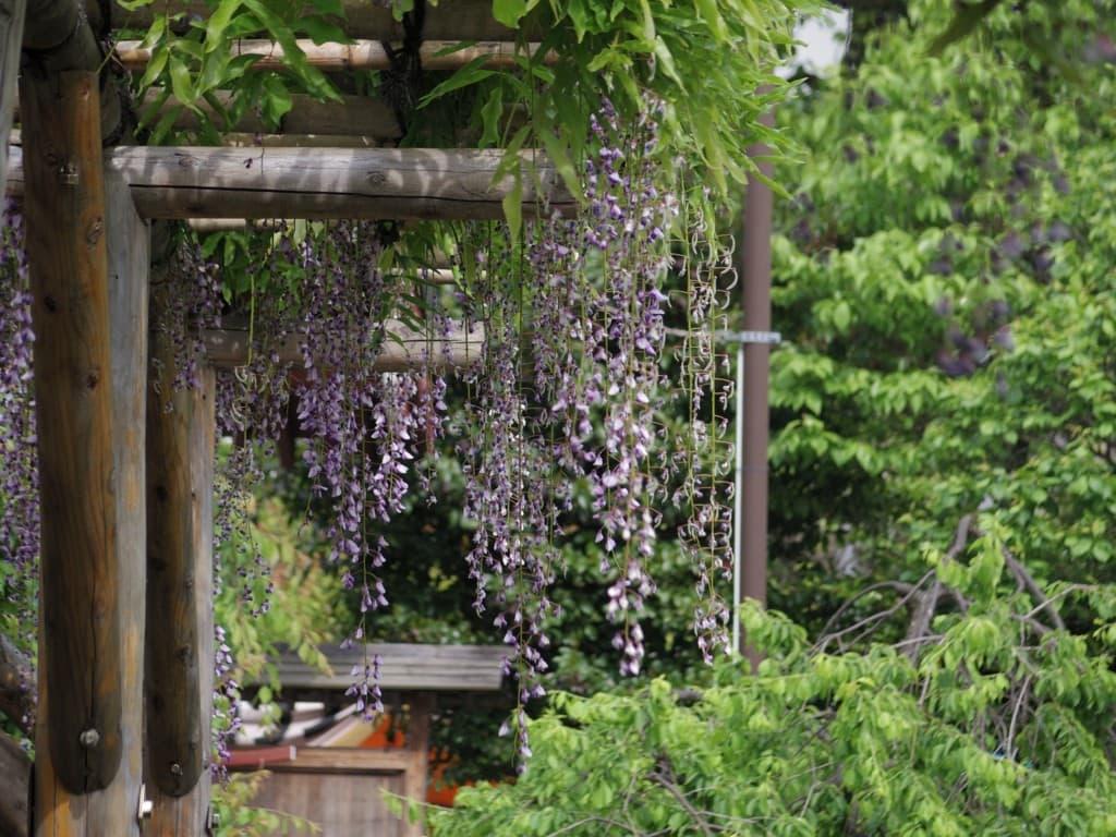 藤棚が見えてきて、藤の花への期待が高まります。望遠で見ていたら、きれいに撮れました。