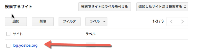 以下のようGoogle Custom Search Engineで自分のサイトだけを検索サイトにするよう設定します。