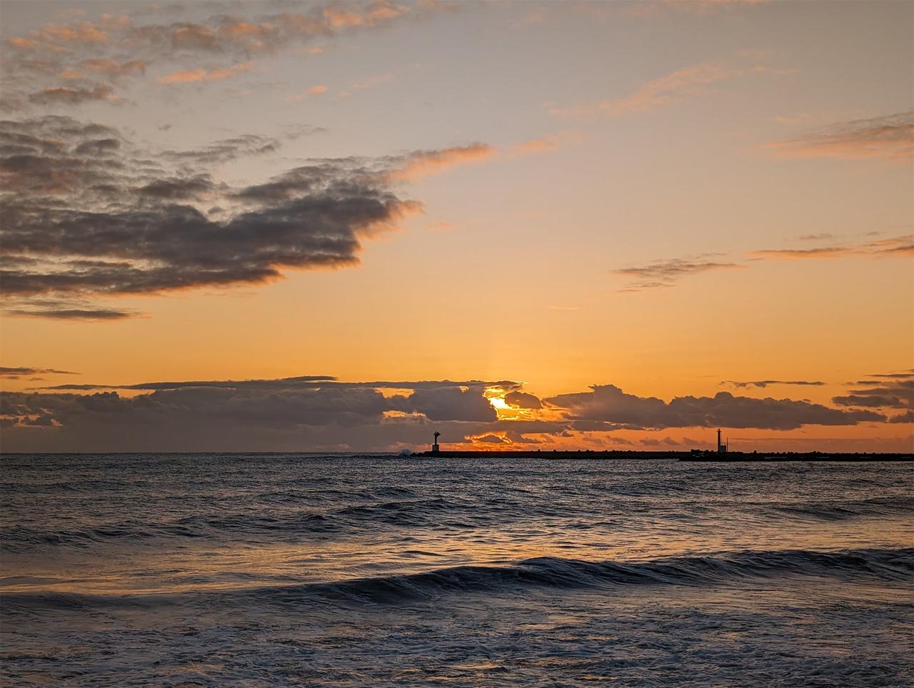 1月2日。恒例の大原海岸に日の出。
